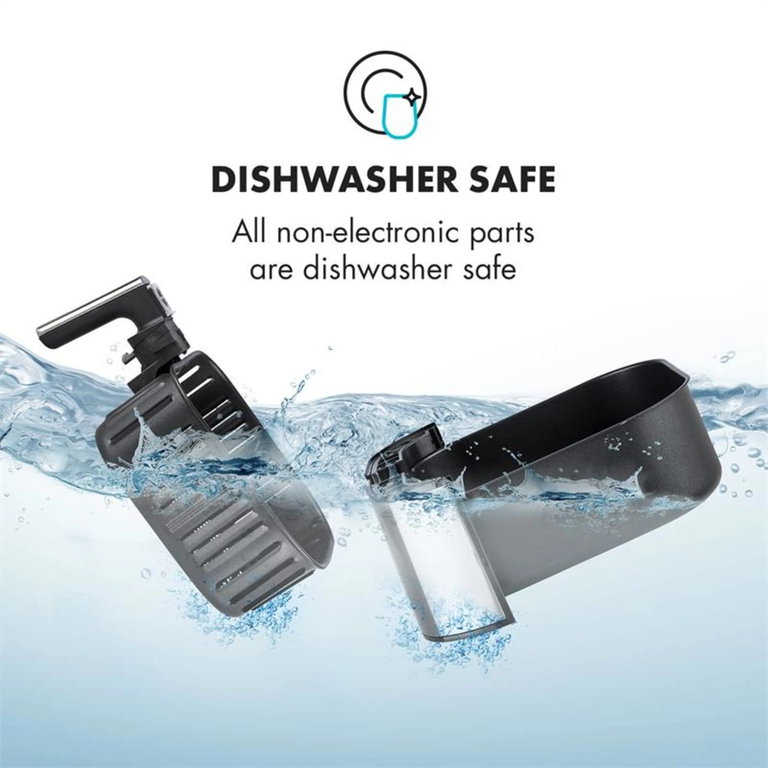 Von außen ist das Edelstahl-Gehäuse der Fritteuse nicht nur schön anzuschauen: Nach der Zubereitung ist das Gerät innen wie außen schnell wieder gesäubert. Zudem sind alle nicht-elektronischen Teile spülmaschinengeeignet.