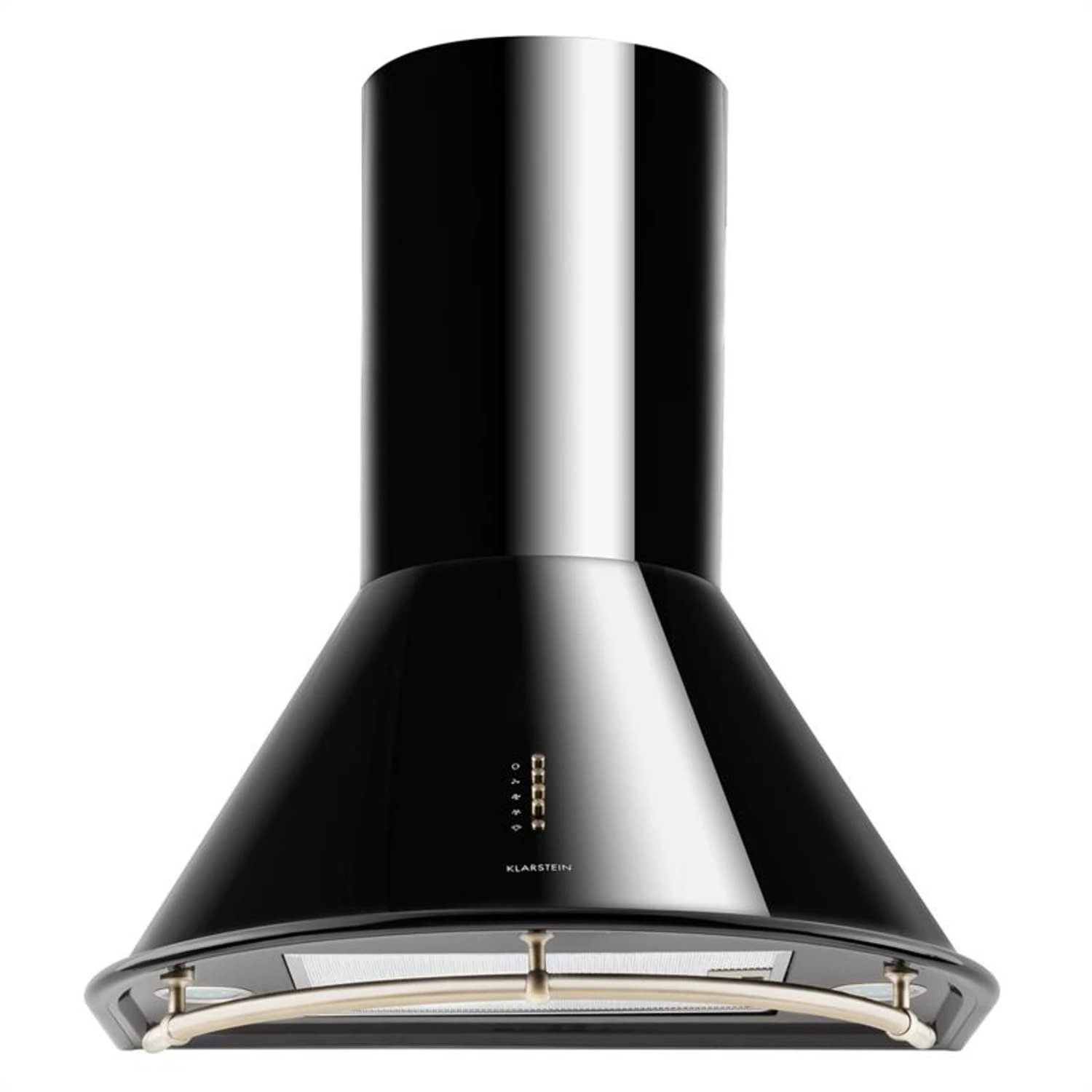 schwarz glänzende Dunstabzugshaube mit drei Leistungsstufen