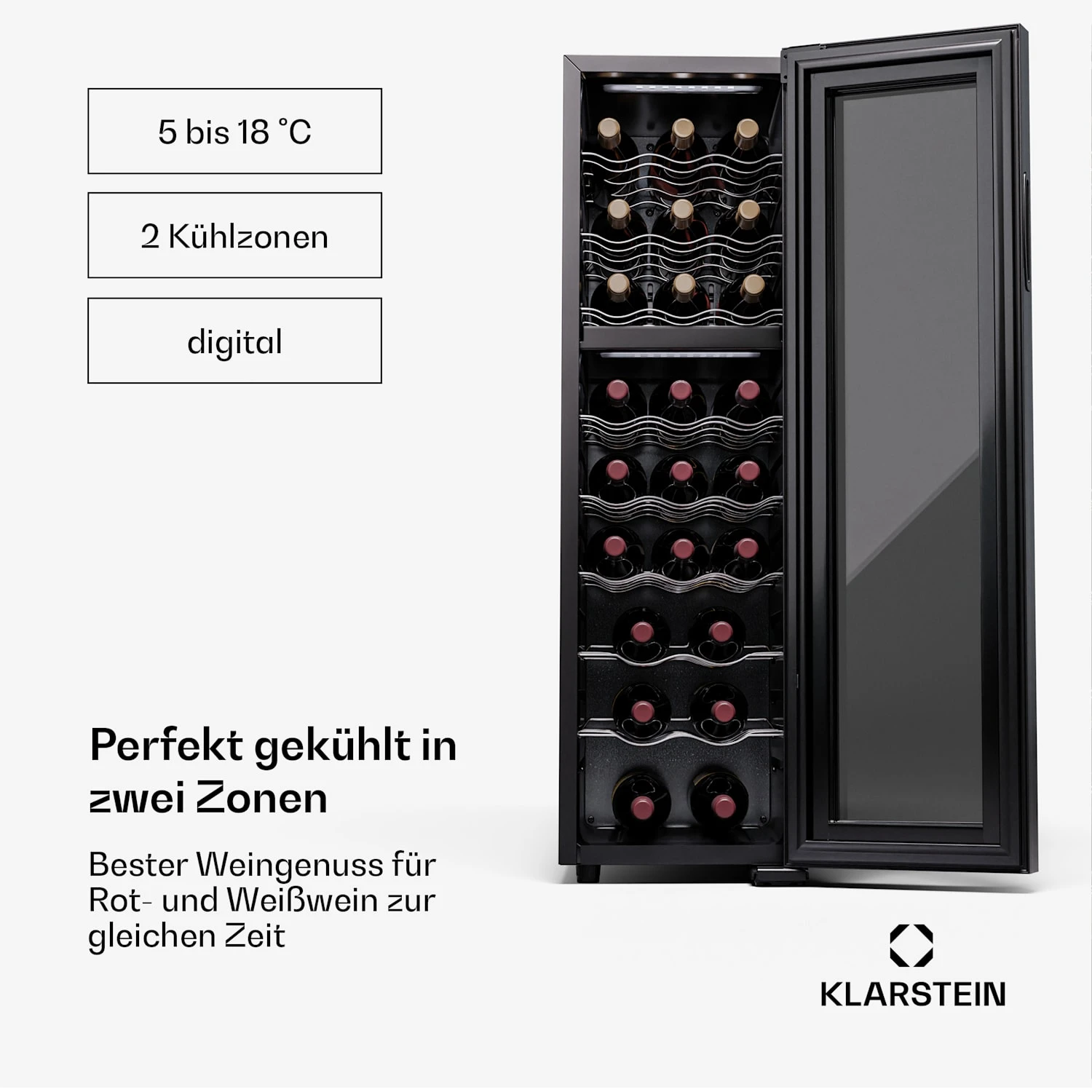 Zwei Kühlzonen: oben und unten 5 bis 18 °C