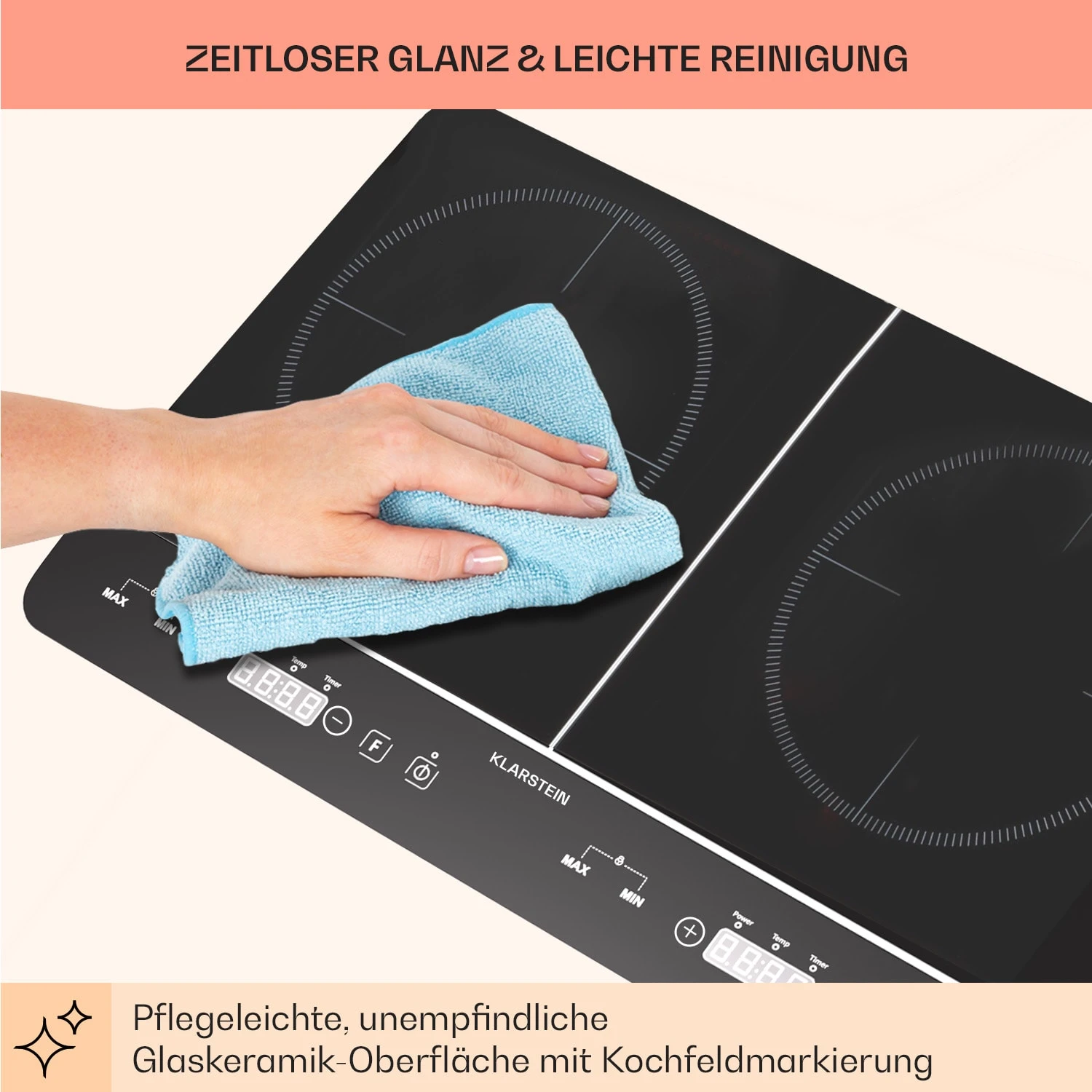 - Induktions-Kochfeld – geeignet für Kochgeschirr mit Stahl-/Eisenboden