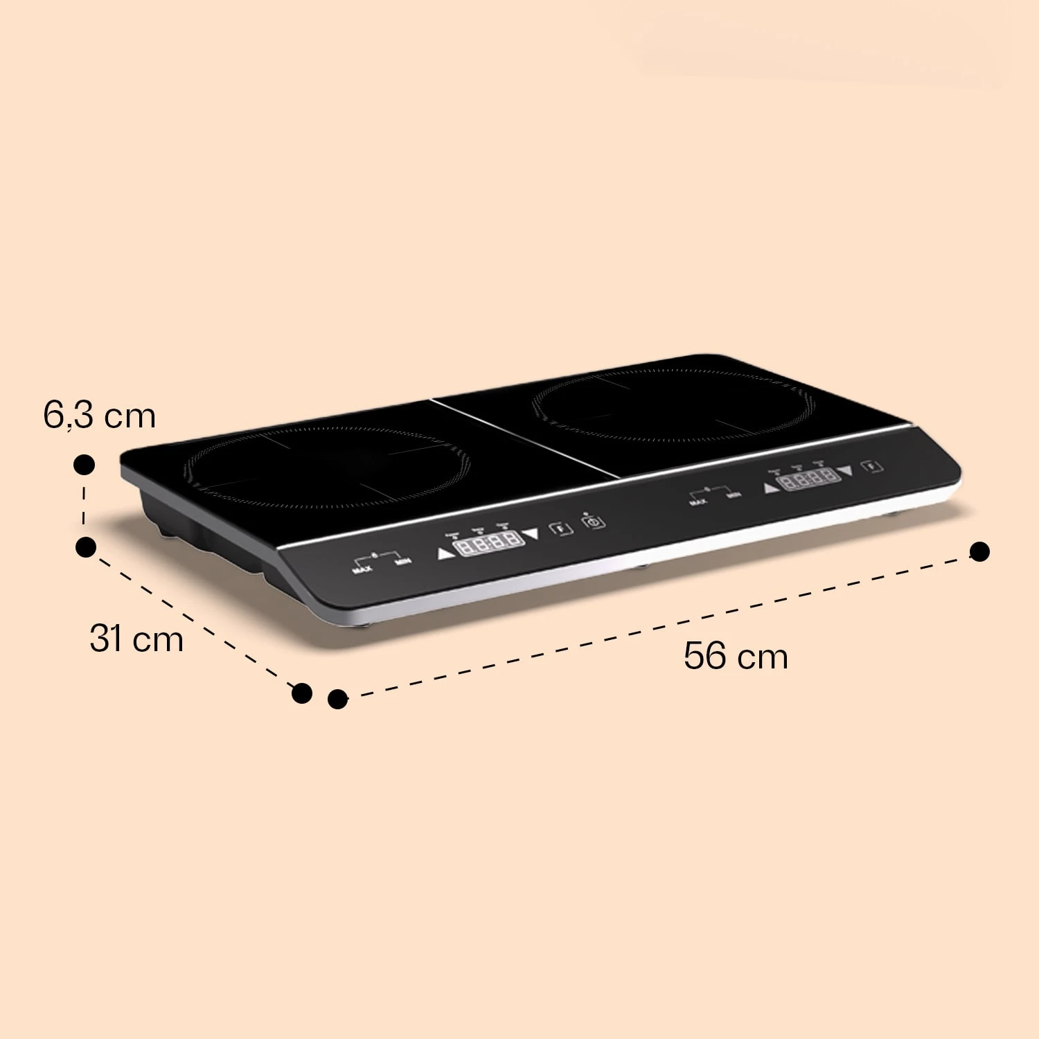 - Leistung (linke & rechte Kochplatte): 2000 W + 1500 W