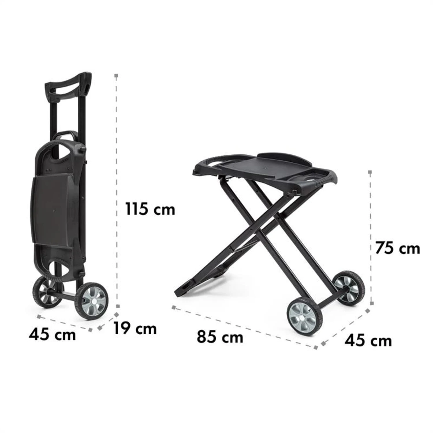 Dank der zwei extragroßen PE-Räder lässt sich der Grilltisch einfach verschieben und ermöglicht ein schnelles Versetzen. So kann der Gasgrill auch ohne zusätzliche Ablagemöglichkeiten flexibel positioniert werden. Die robuste Verarbeitung aus pulverbeschichtetem Stahl sorgt dafür, dass der Grilltisch allen Anforderungen gerecht wird.