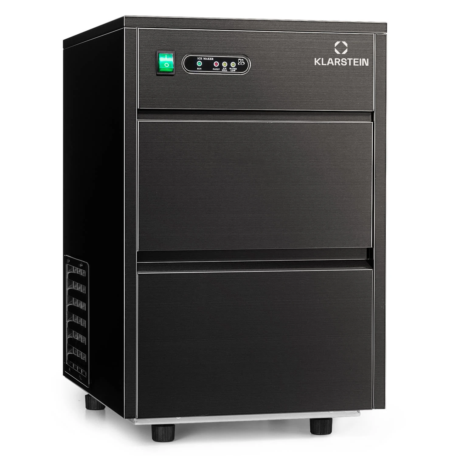 Dank ihres schlichten Edelstahlgehäuses integriert sich die Klarstein Powericer XL Eiswürfelmaschine problemlos in Bar- oder Küchenbereiche.