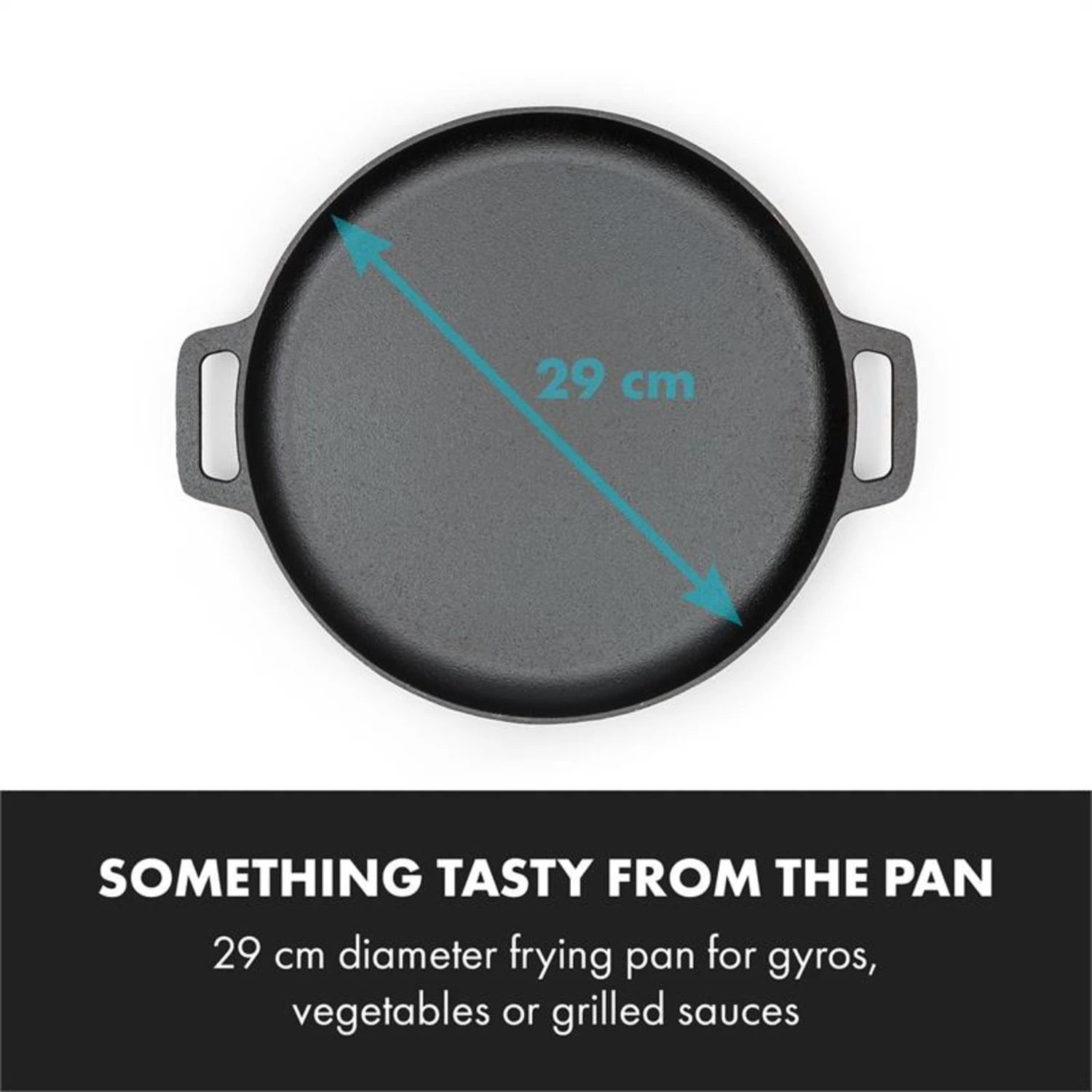 Mit der praktischen Gusseisenpfanne kannst du leckeres Gyros, Gemüse, Soßen oder