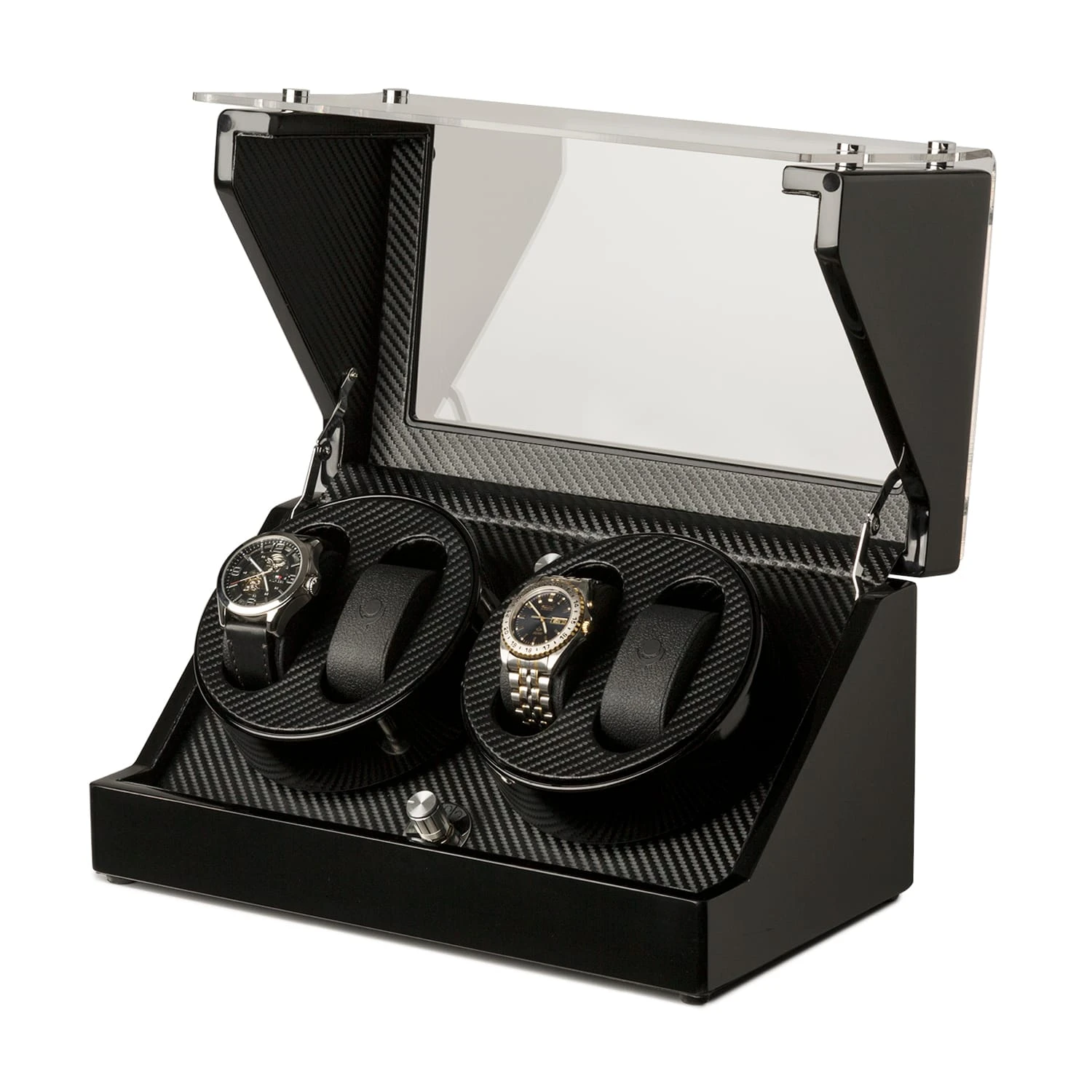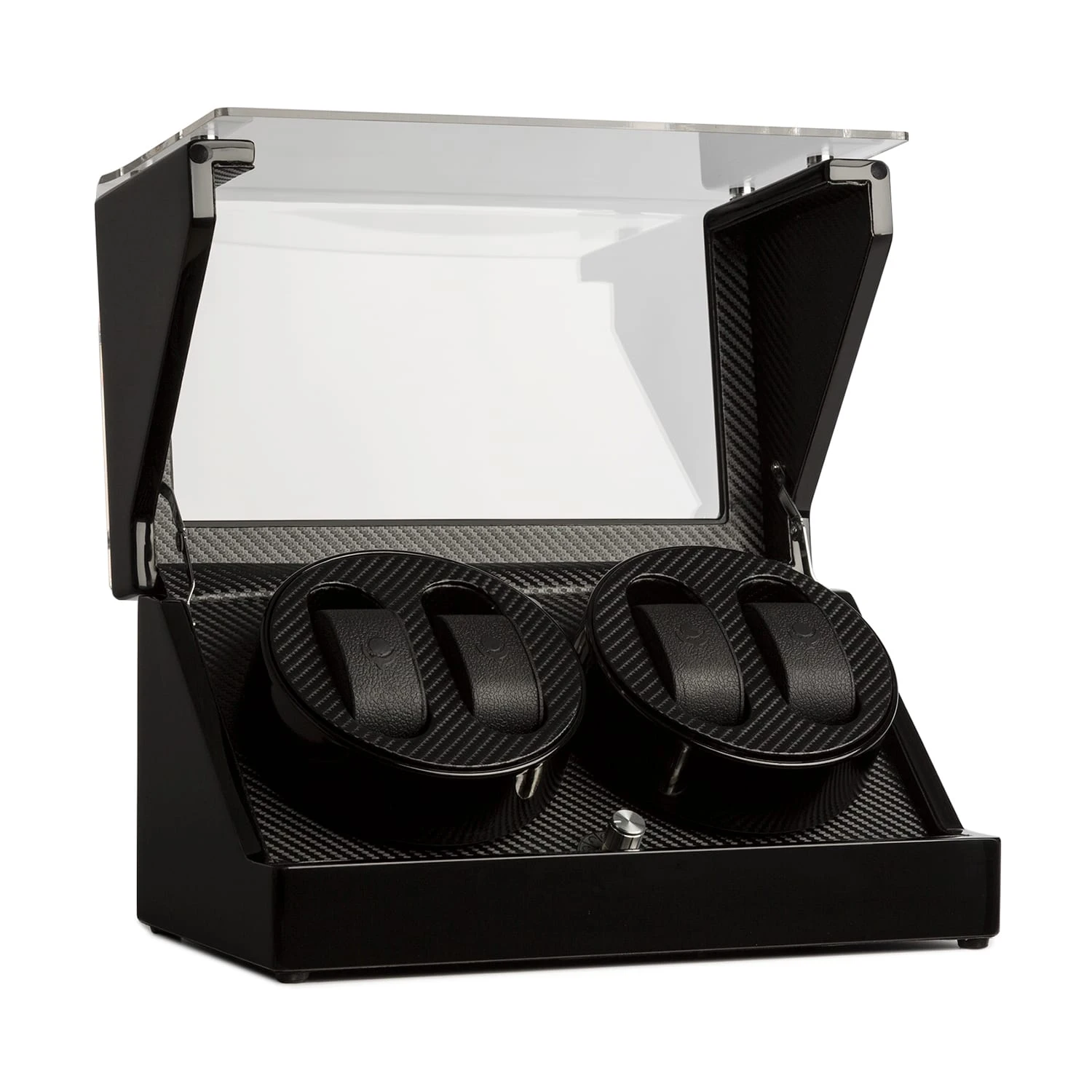 dekorativer Uhrenbeweger für 4 Uhren in Karbon-Optik