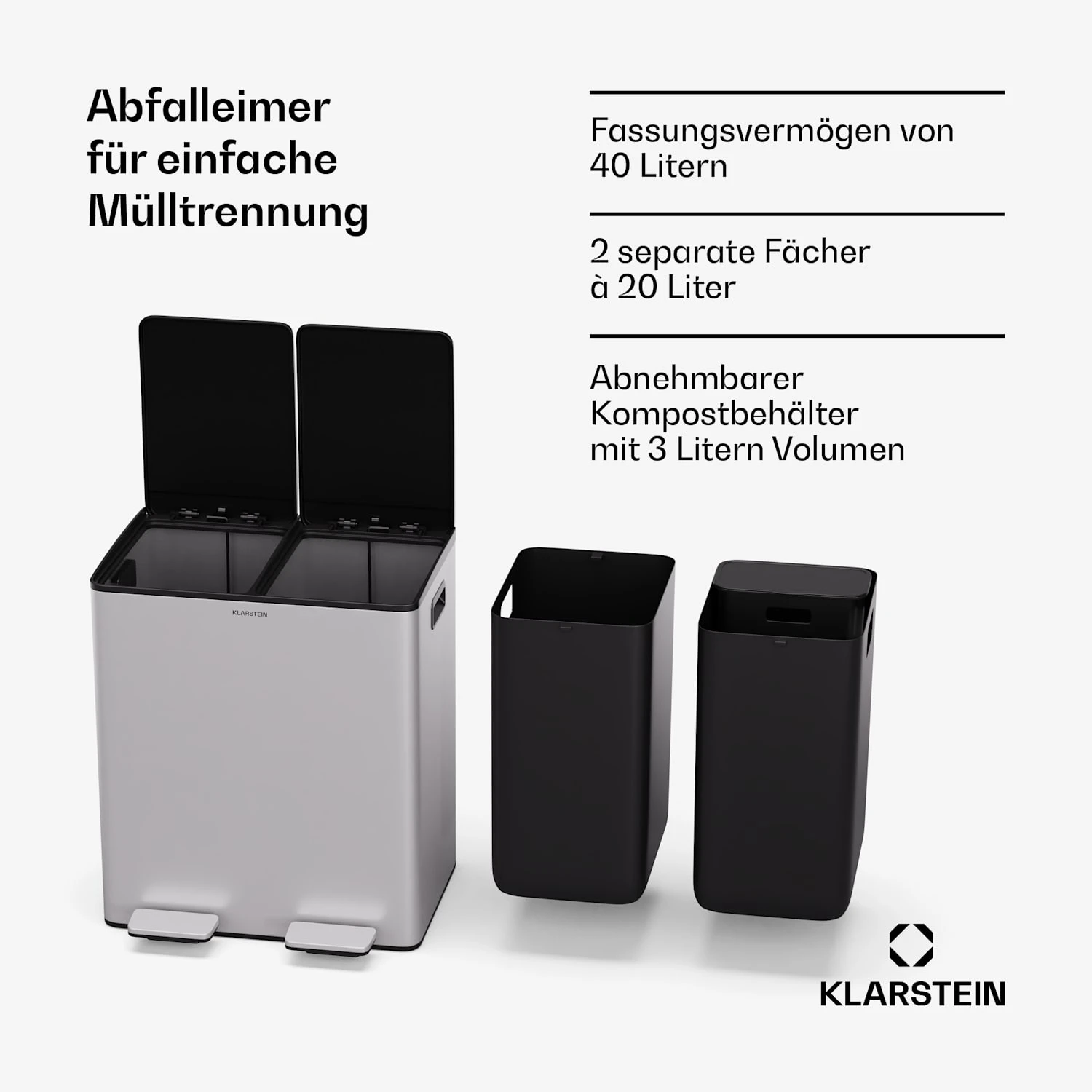 Effiziente Abfalltrennung: Zwei separate Fächer ermöglichen eine mühelose Sortierung von Abfällen für eine umweltfreundliche Entsorgung