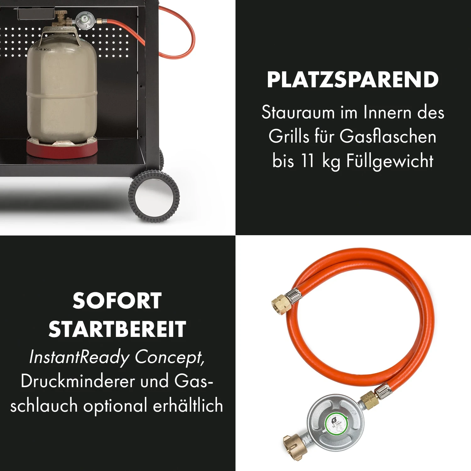 - Maße Grillablage links/rechts: ca. 45 x 12 cm (BxT)