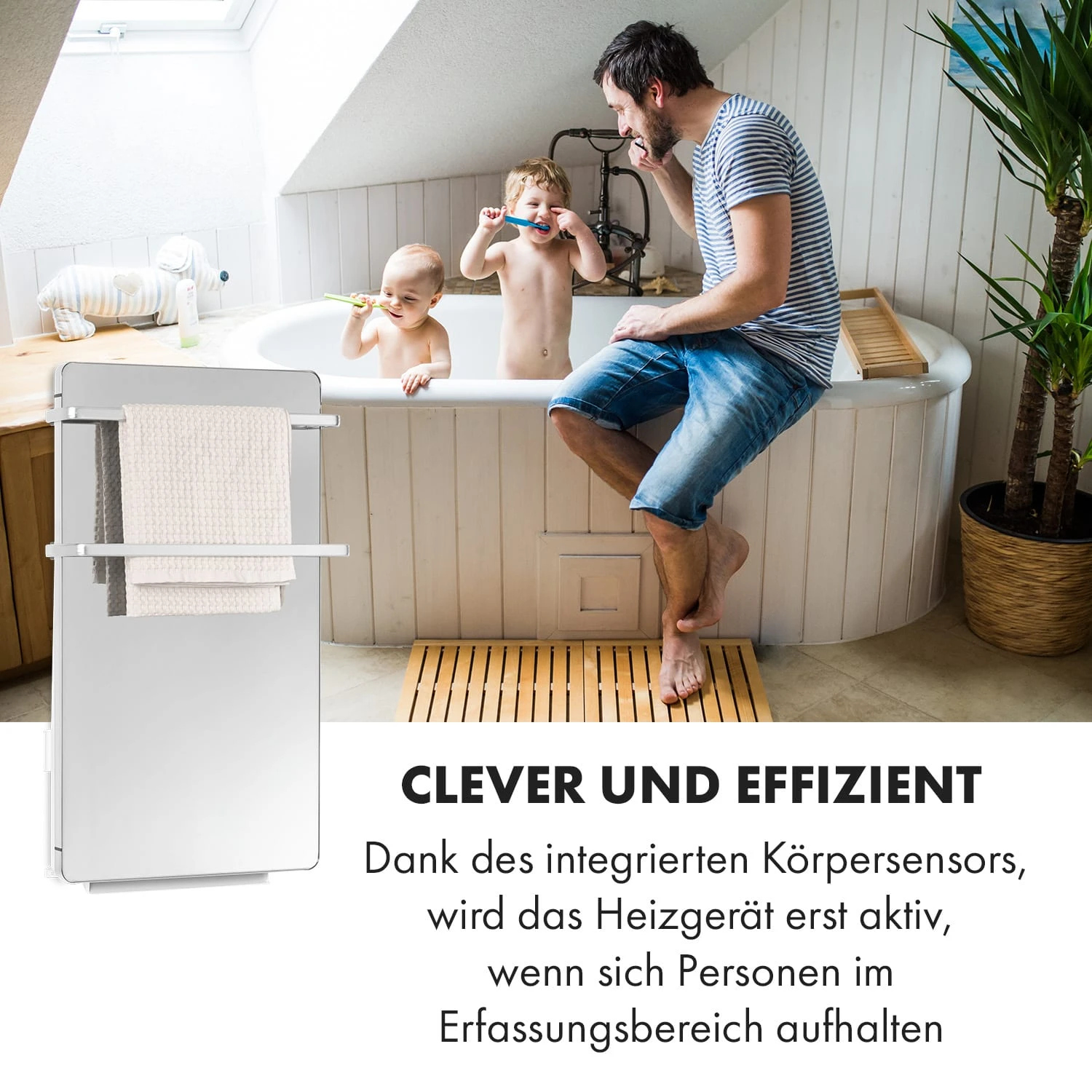 - Betriebsart: Konvektion (PTC-Heizer) / Wärmestrahlung (Infrarot-Handtuchwärmer)