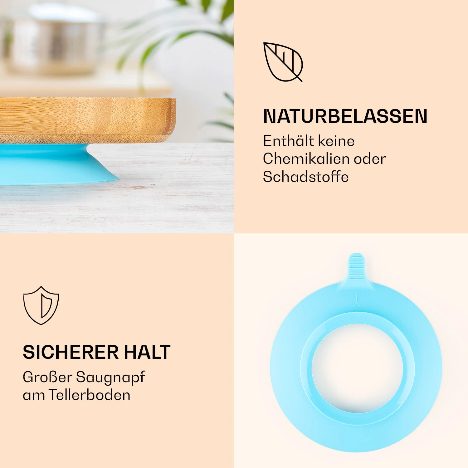 Kindergeschirr: Bambusteller mit Saugnapf und Löffel
