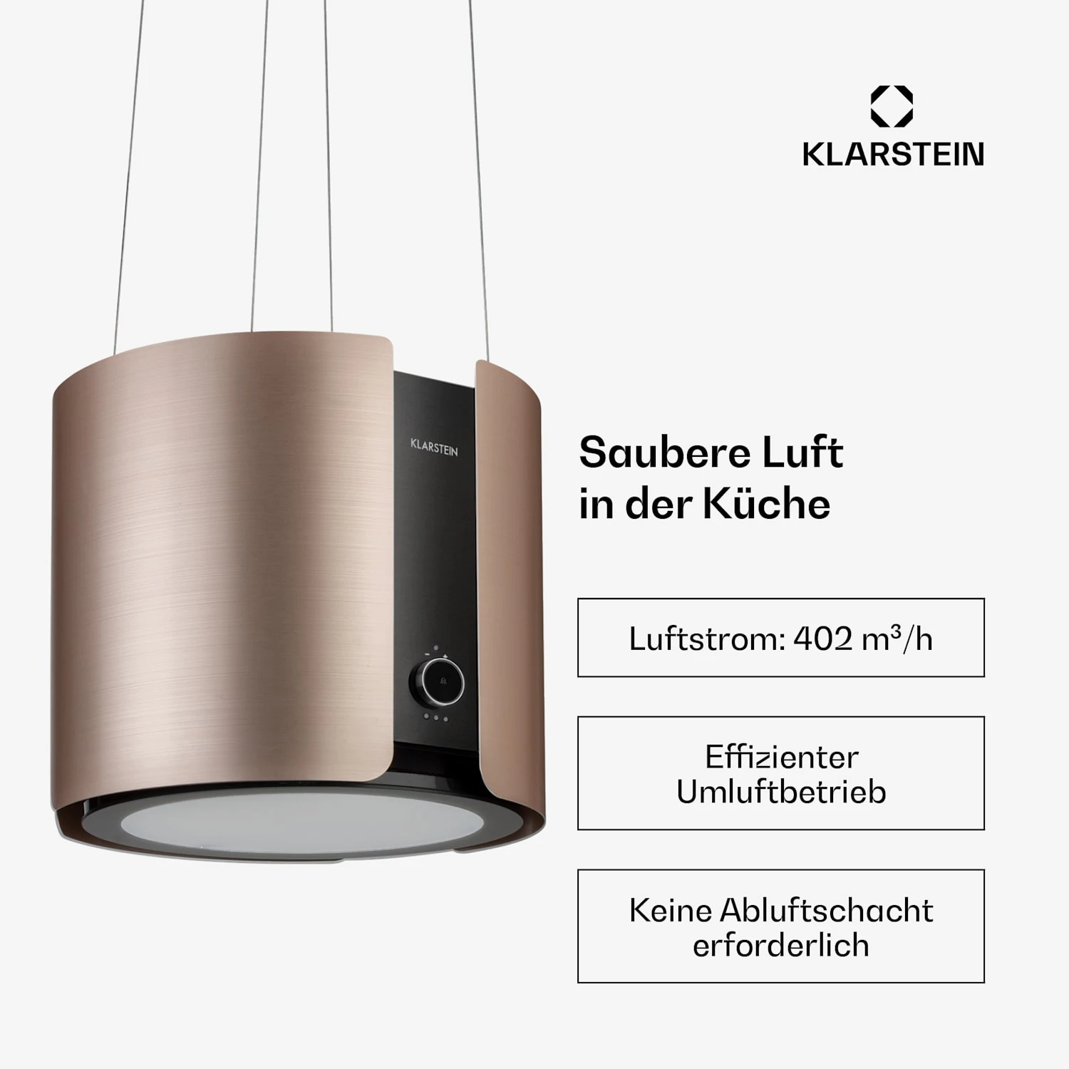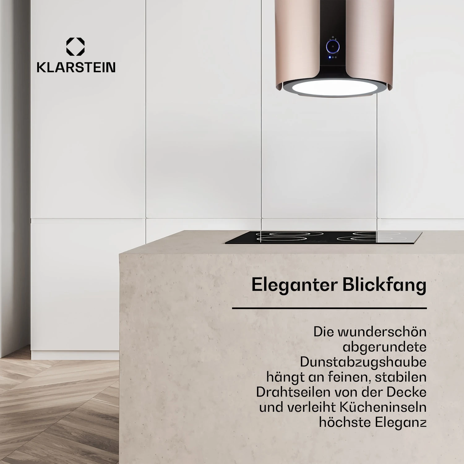 Freihängend: deckenmontierte Inselabzugshaube mit 200 Watt Motorleistung