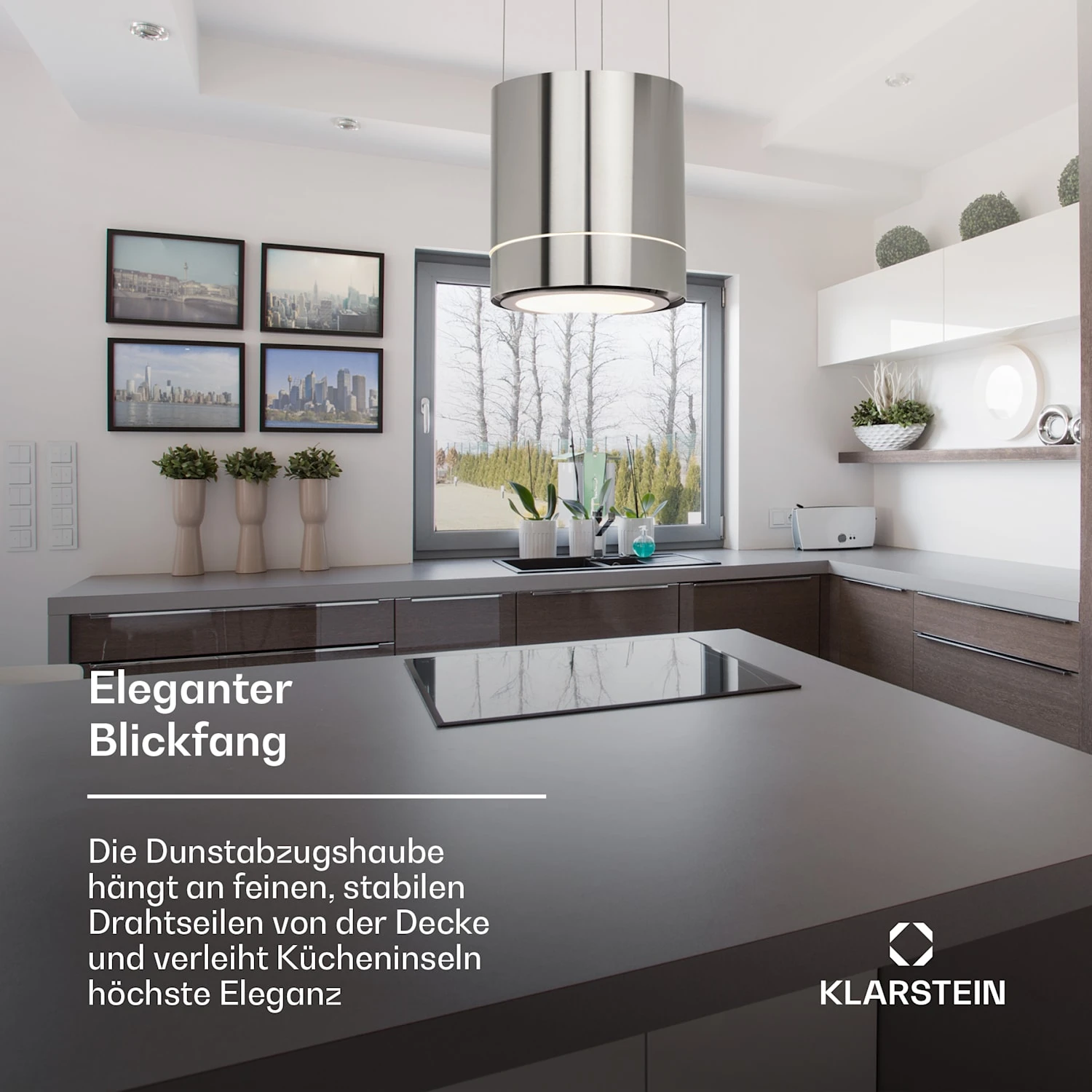 Der Fokuspunkt: Inselabzugshaube zur Deckenmontage über freistehenden Kochstellen