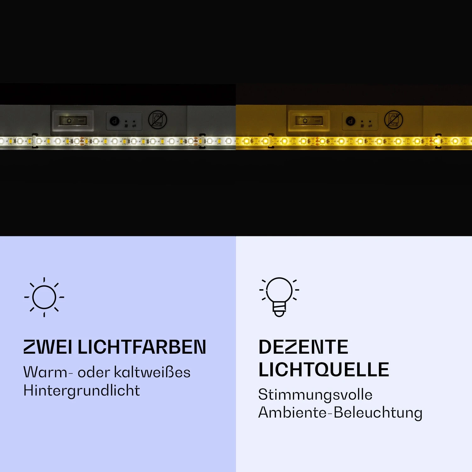 Zwei Lichtfarben: warm- oder kaltweißes Hintergrundlicht