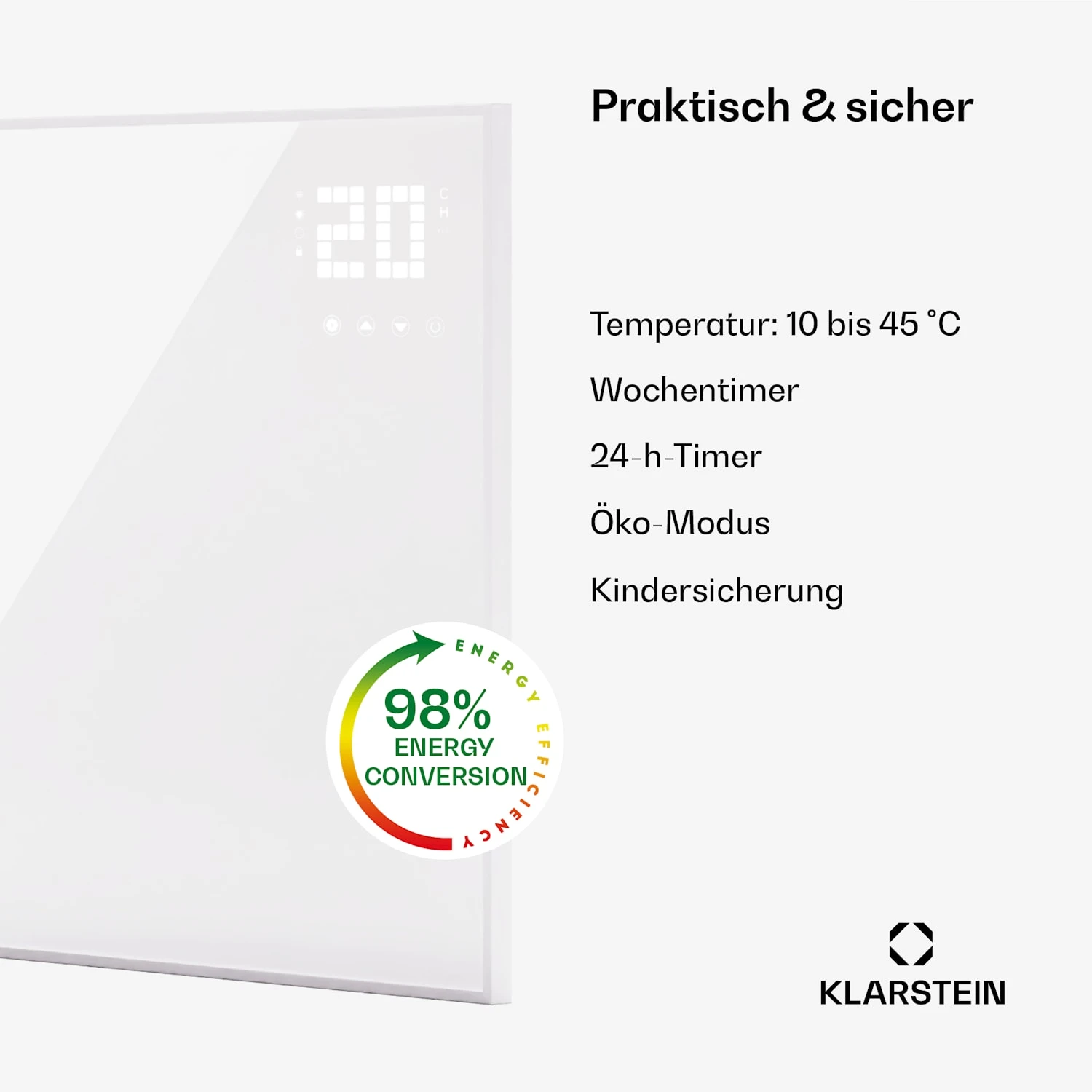- Oberflächentemperatur des Heizpanels: 85 bis 95 °C